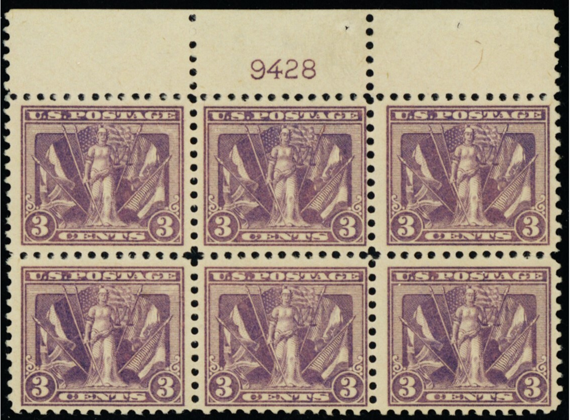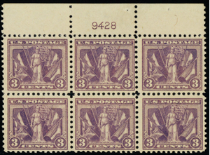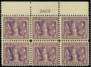 537, Mint NH 3¢ Top Plate Block of Six Stamps CV $350 * Stuart Katz