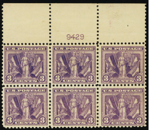 537, Mint NH VF 3¢ TOP Plate Block of Six * Stuart Katz