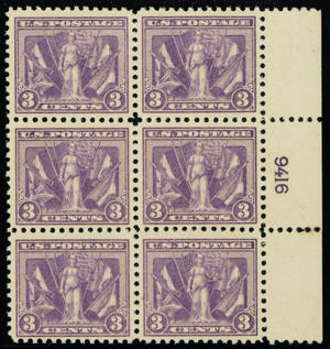 537, Mint VF NH 3¢ Plate Block of Six Stamps CV $350 * Stuart Katz