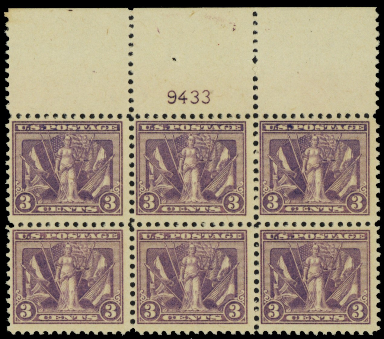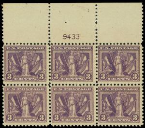 537, Mint VF NH 3¢ Top Plate Block of Six Stamps *** Stuart Katz