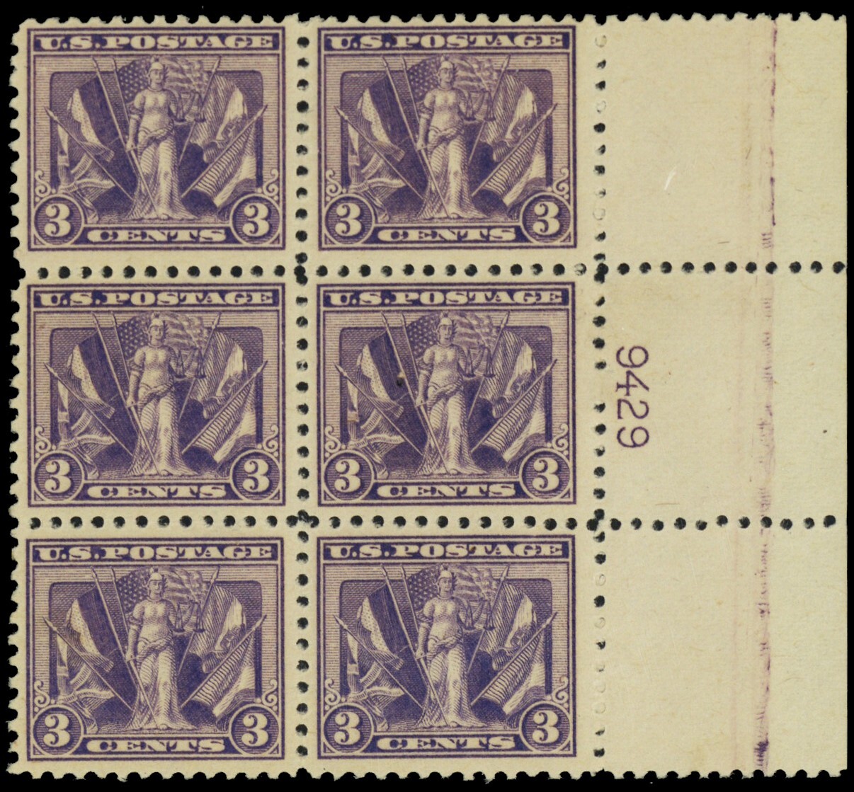 537, Mint VF NH 3¢ Top Plate Block of Six Stamps ** Stuart Katz