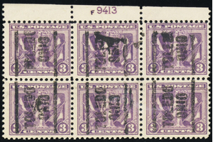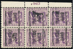 537, Used OG NH Toledo Ohio Precancel 3¢ Plate Block of Six - Stuart Katz