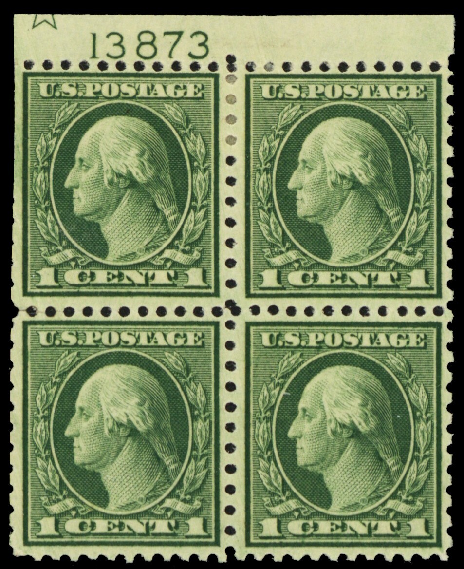 538, Mint H 1¢ Plate Block of Four - Stuart Katz