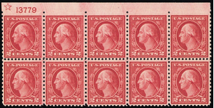 540, Mint VF NH 2¢ Plate Block of Ten (Imperf top Margin) - BEAUTY * Stuart Katz