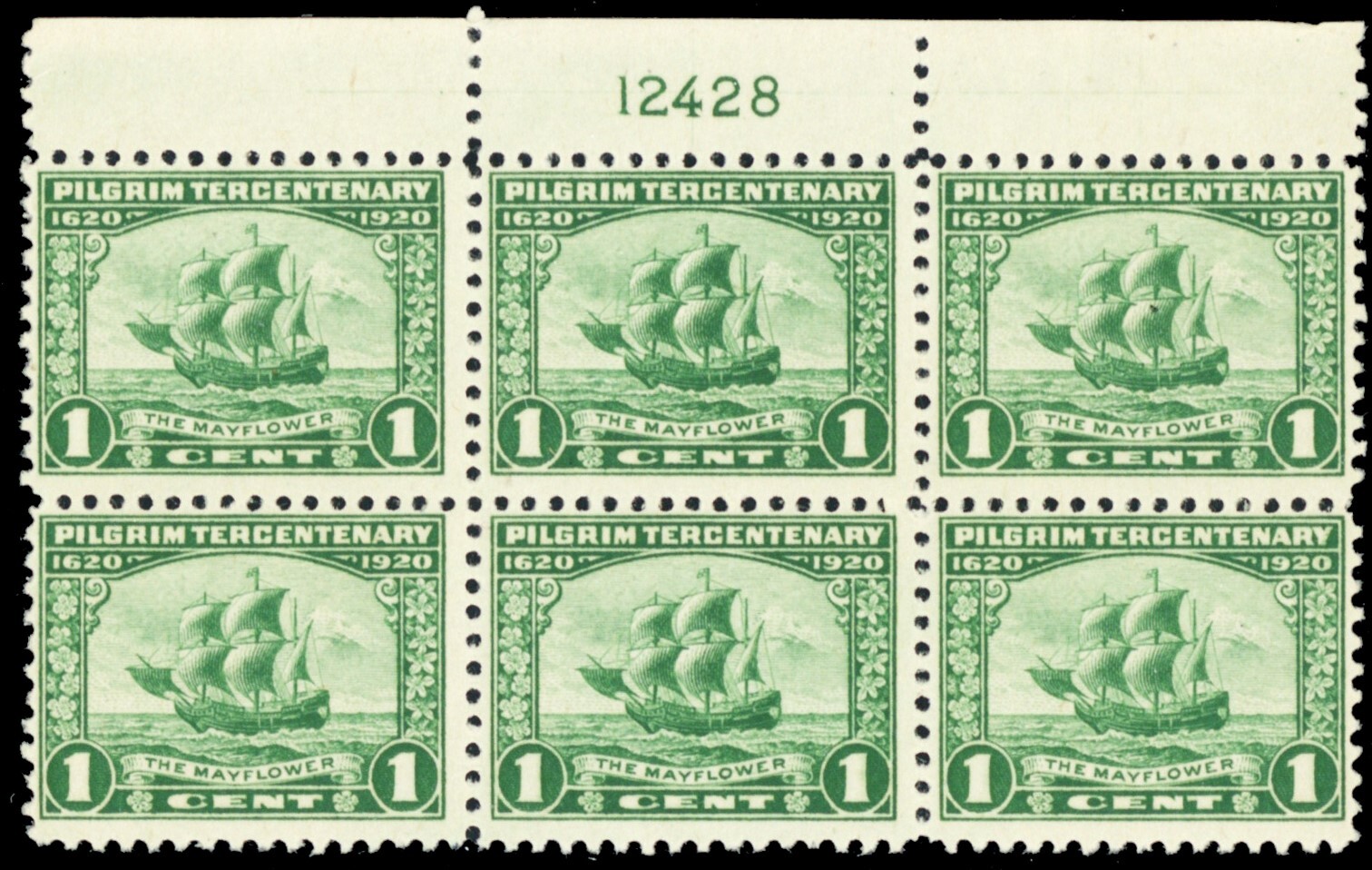 548, Mint FVF NH 1¢ Top Plate Block of Six Stamps -- Stuart Katz