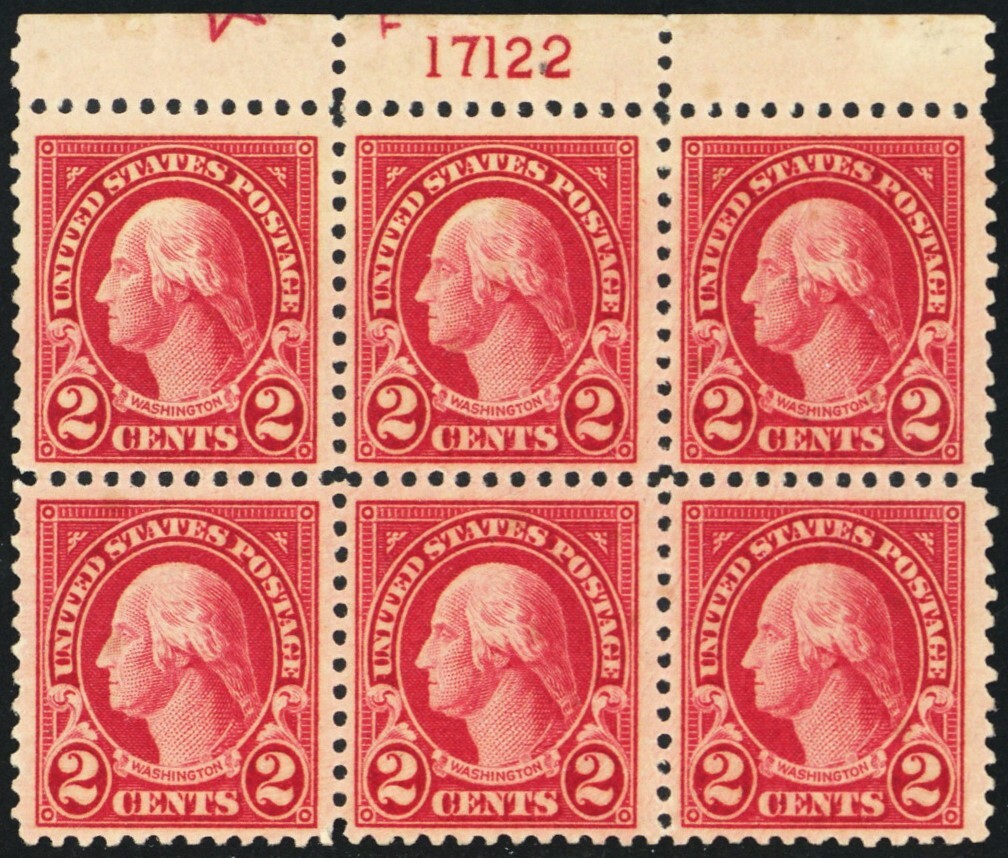 554, Mint VF NH 2¢ Plate Block of Six With Star SCV $97.50 * Stuart Katz