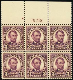 555, Mint NH 3¢ F/VF TOP Plate Block of Six Stamps - Stuart Katz