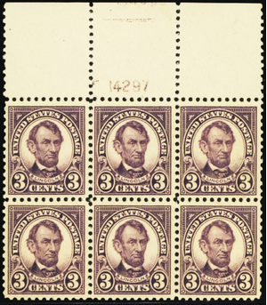 555, Mint VF/XF NH 3¢ Top Plate Block of Six - A GEM * Stuart Katz