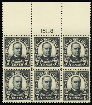 559, Mint VF NH 7¢ FULL WIDE TOP Plate Block of Six Stamps * Stuart Katz