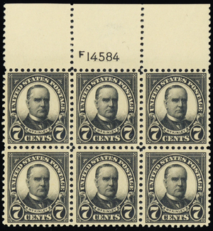 559, Mint VF NH 7¢ TOP Plate Block of Six Stamps * Stuart Katz