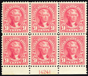 561, Mint VF+ NH 9¢ Plate Block of Six SCV $375.00 * Stuart Katz