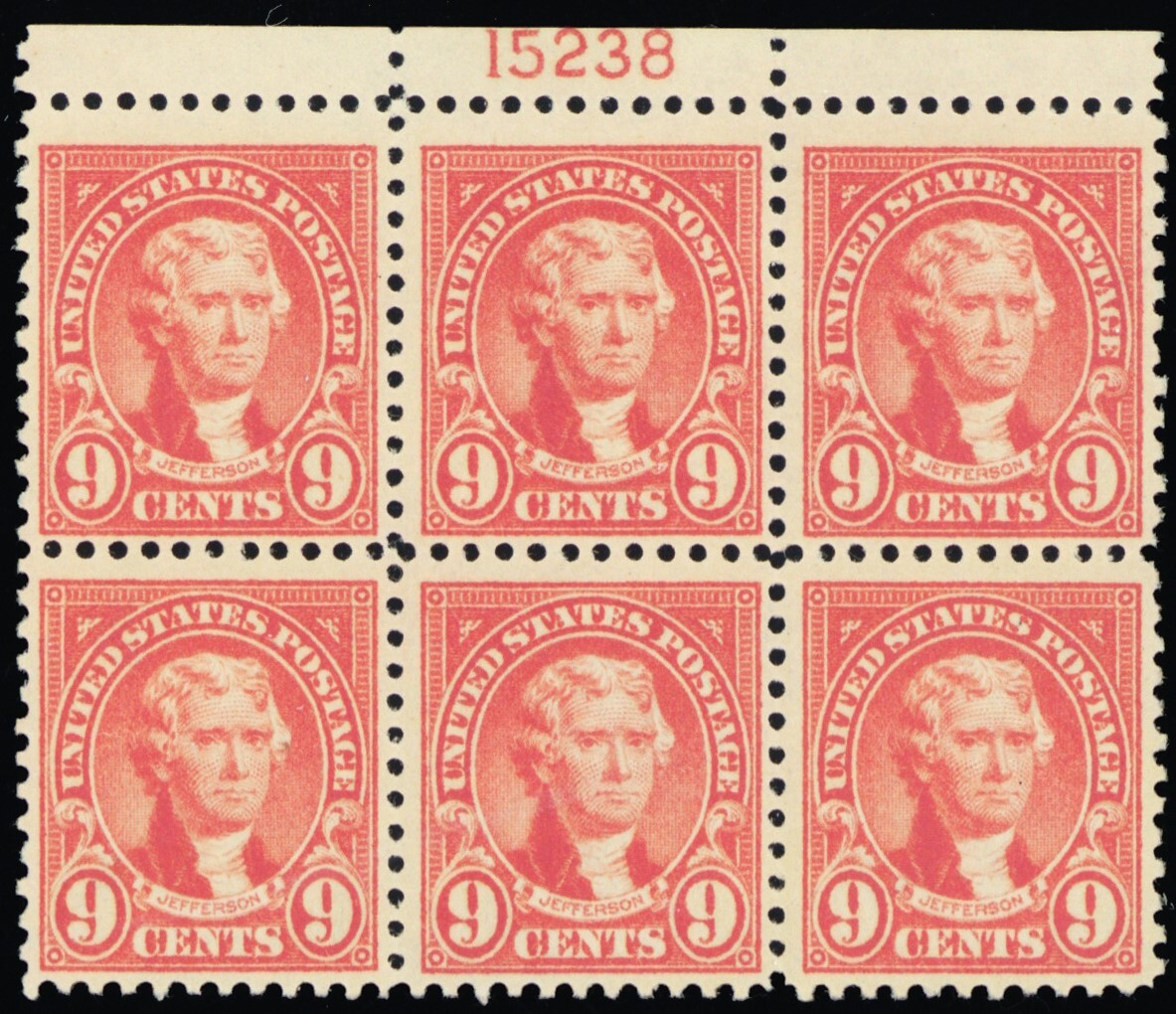 561, Mint VF NH 9¢ Top Plate Block of Six Stamps * Stuart Katz