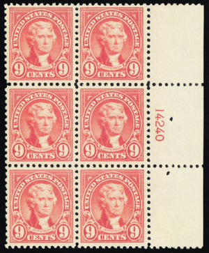 561, Mint XF NH 9¢ Plate Block of Six - BEAUTY * Stuart Katz