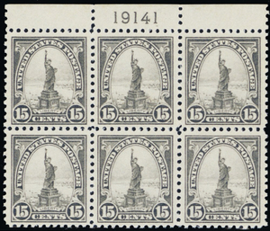 566, Mint 15¢ VF/XF NH Top Plate Block of Six Fresh!!! - Stuart Katz