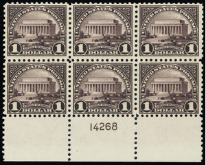 571, Mint F-VF VLH $1 Plate Block Of Six Stamps - Stuart Katz