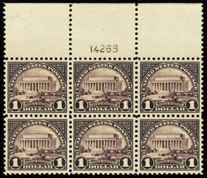 571, Mint Superb NH $1 WIDE TOP Plate Block of Six - A GEM * Stuart Katz