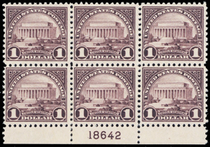 571, Mint VF NH $1 Plate Block of Six Stamps Cat $525.00 - Stuart Katz