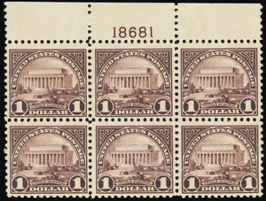 571, Mint VF NH $1 Plate Block of Six Stamps - Stuart Katz