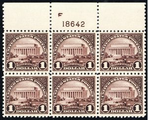 571, Mint VF NH $1 - Plate Block of Six Stamps * Stuart Katz