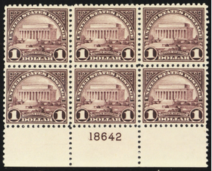 571, Mint VF/XF NH $1 Plate Block of Six Stamps * Stuart Katz
