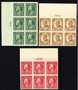 575-77, Mint Set of Three Plate Blocks CV $190 - Stuart Katz