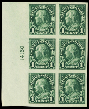 575, Mint 1¢ XF NH Plate Block of Six - Stuart Katz