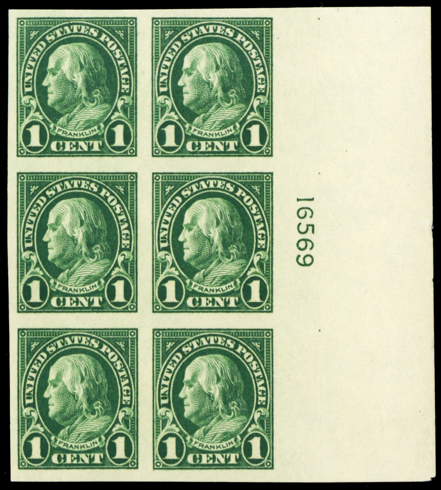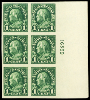 575, Mint NH XF 1¢ Plate Block of Six - Stuart Katz