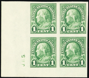 575, Superb NH 1¢ Block With J.H.S. Sideographer Initials - Stuart Katz