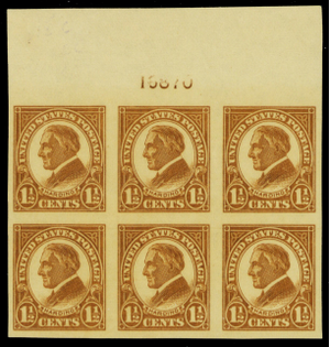 576, Mint XF NH 1-1/2¢ Top Plate Block of Six Stamps - Stuart Katz