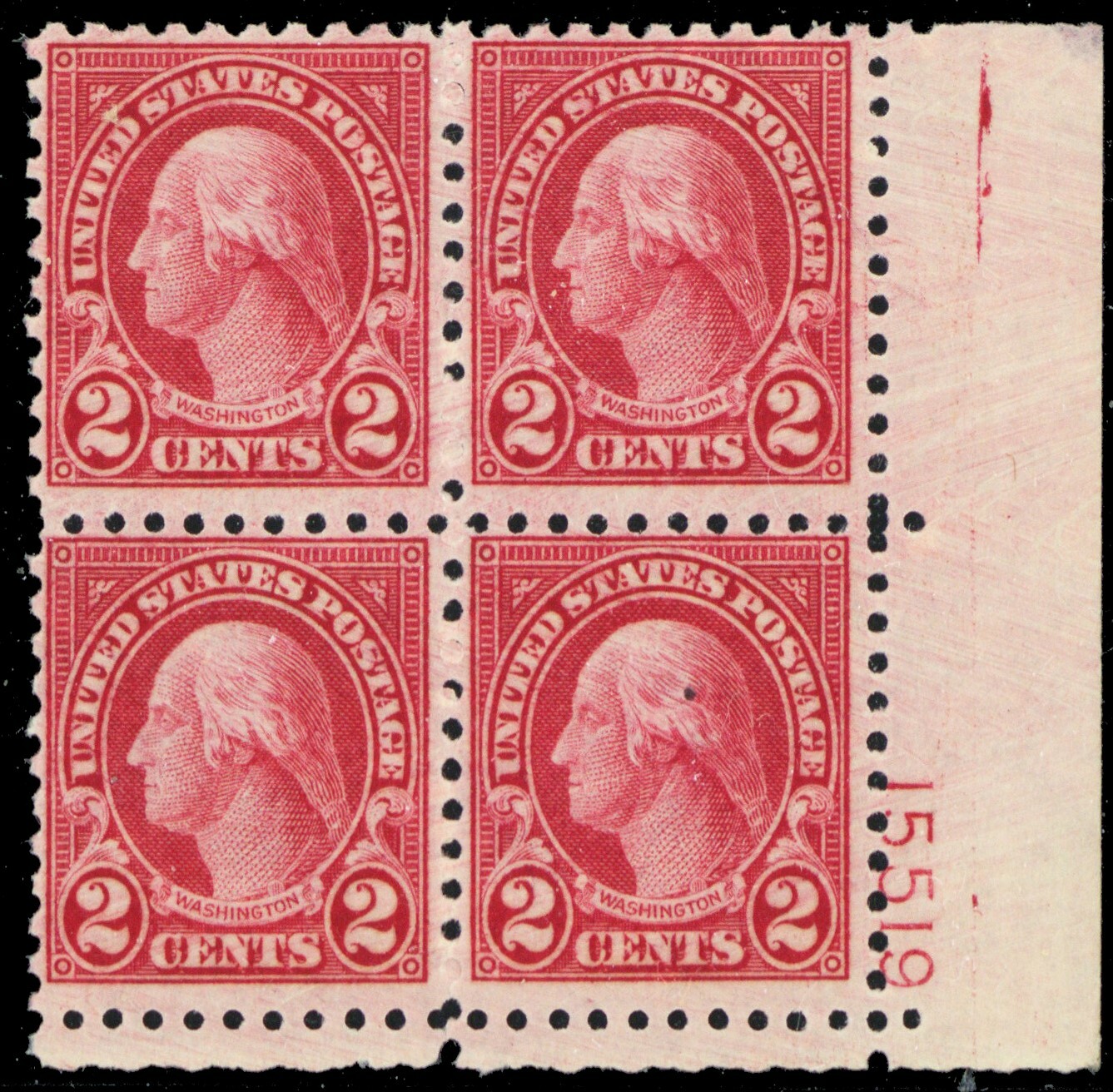 583, Mint 2¢ F/VF NH Plate Block of 4 CV $110.00 - Stuart Katz