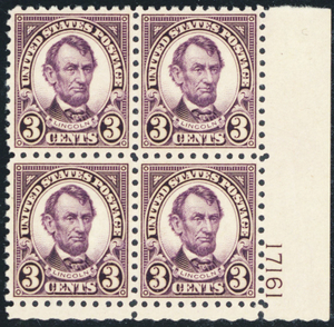 584, Mint XF NH 3¢ - GEM Plate Block of Four Stamps - Stuart Katz