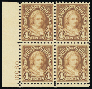 585, Mint Superb NH 4¢ Plate Block of Four - Stuart Katz