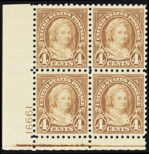585, Mint XF NH 4¢ GEM Plate Block of Four - Stuart Katz
