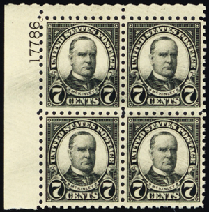 588, Mint VF NH 7¢ Plate Block of Four - Stuart Katz
