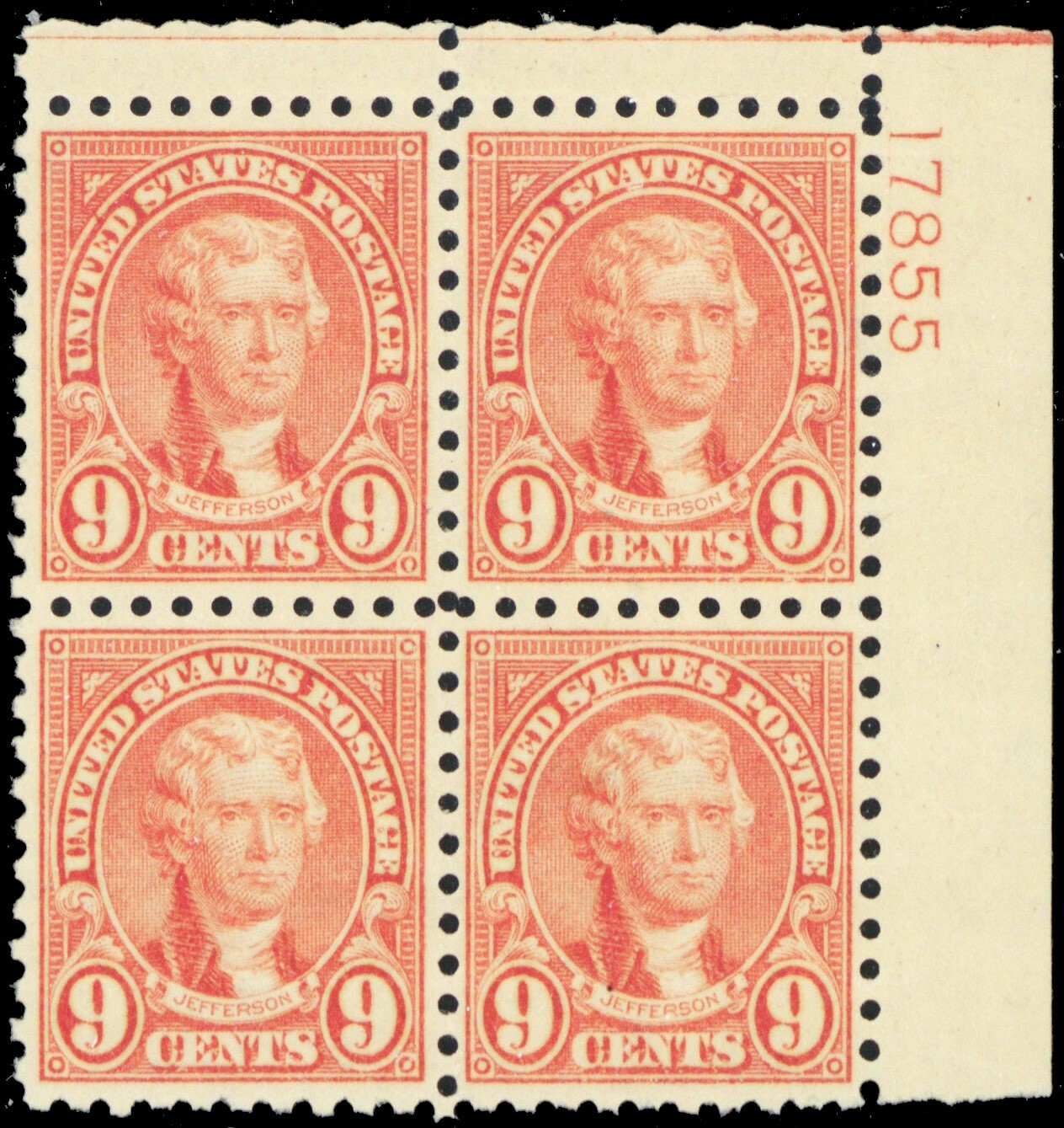 590, Mint 9¢ XF NH Plate Block of Four - A GEM! - Stuart Katz