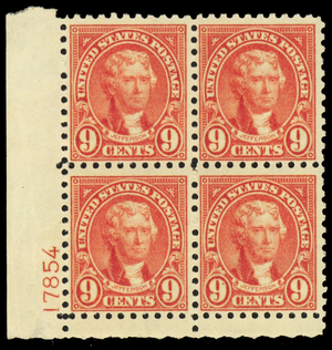 590, Mint LH VF 9¢ Plate Block of Four - Stuart Katz