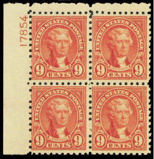590, Mint NH 9¢ Plate Block of Four Stamps CV $225 * Stuart Katz