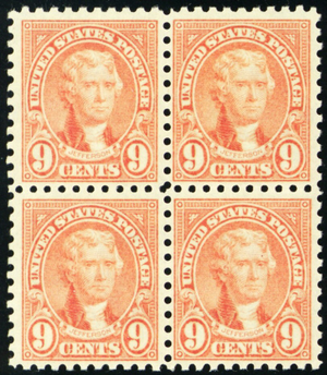 590, Mint VF NH 9¢ Block of 4 Stamps CV $50.00 -*- Stuart Katz