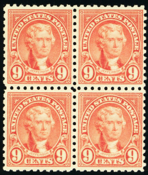 590, Mint VF NH 9¢ Block of 4 Stamps CV $50.00 - Stuart Katz