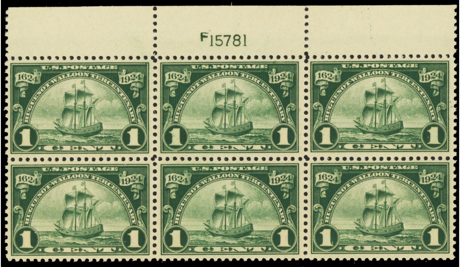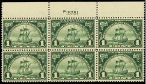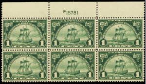 614, Mint NH 1¢ VF Top Plate Block of Six Stamps - Stuart Katz