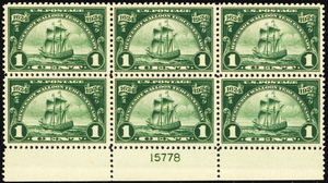 614, Mint VF NH 1¢ Plate Block of Six Stamps - Stuart Katz