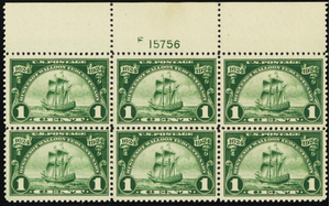 614, Mint VF+ NH 1¢ Top Plate Block of Six Stamps * Stuart Katz