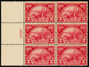 615, Mint FVF NH 2¢ Left Side Plate Block of Six -- Stuart Katz
