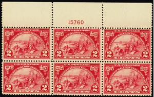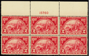 615, Mint NH 2¢ Top Plate Block of Six - Stuart Katz