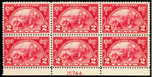 615, Mint VF NH 2¢ Bottom Plate Block of Six Stamps - Stuart Katz