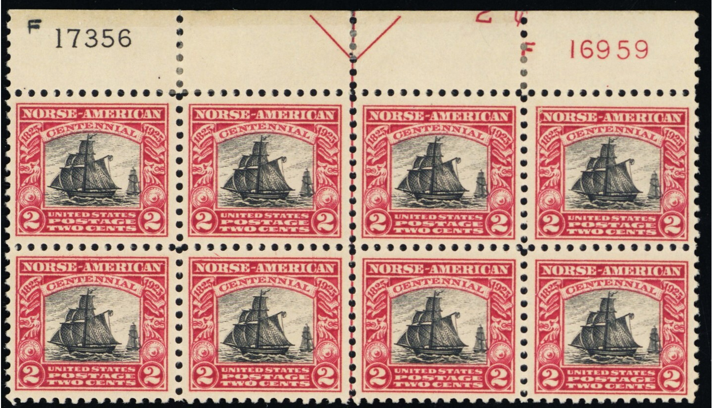 620, Mint VF HR In Selvage Only - 2¢ Plate Block of Eight * Stuart Katz