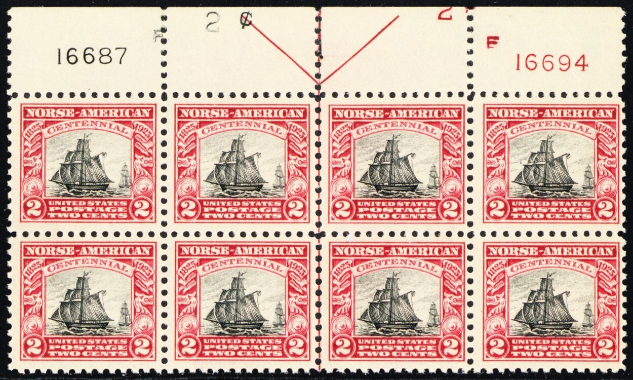 620, Mint VF NH 2¢ FULL TOP Plate Block of Eight * Stuart Katz