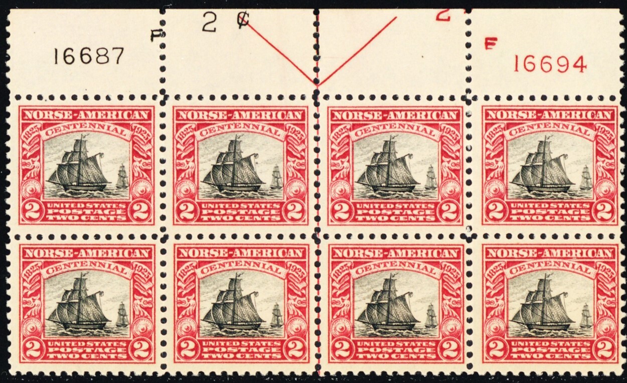 620, Mint VF NH 2¢ WIDE TOP Plate Block of Eight * Stuart Katz