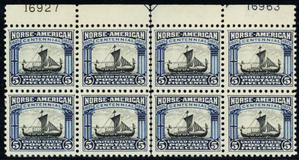 621, Mint NH 5¢ Top Plate Block of Eight CV $700 - Stuart Katz