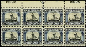 621, Mint NH 5¢ VF Top Plate Blocks of Eight Stamps ** Stuart Katz